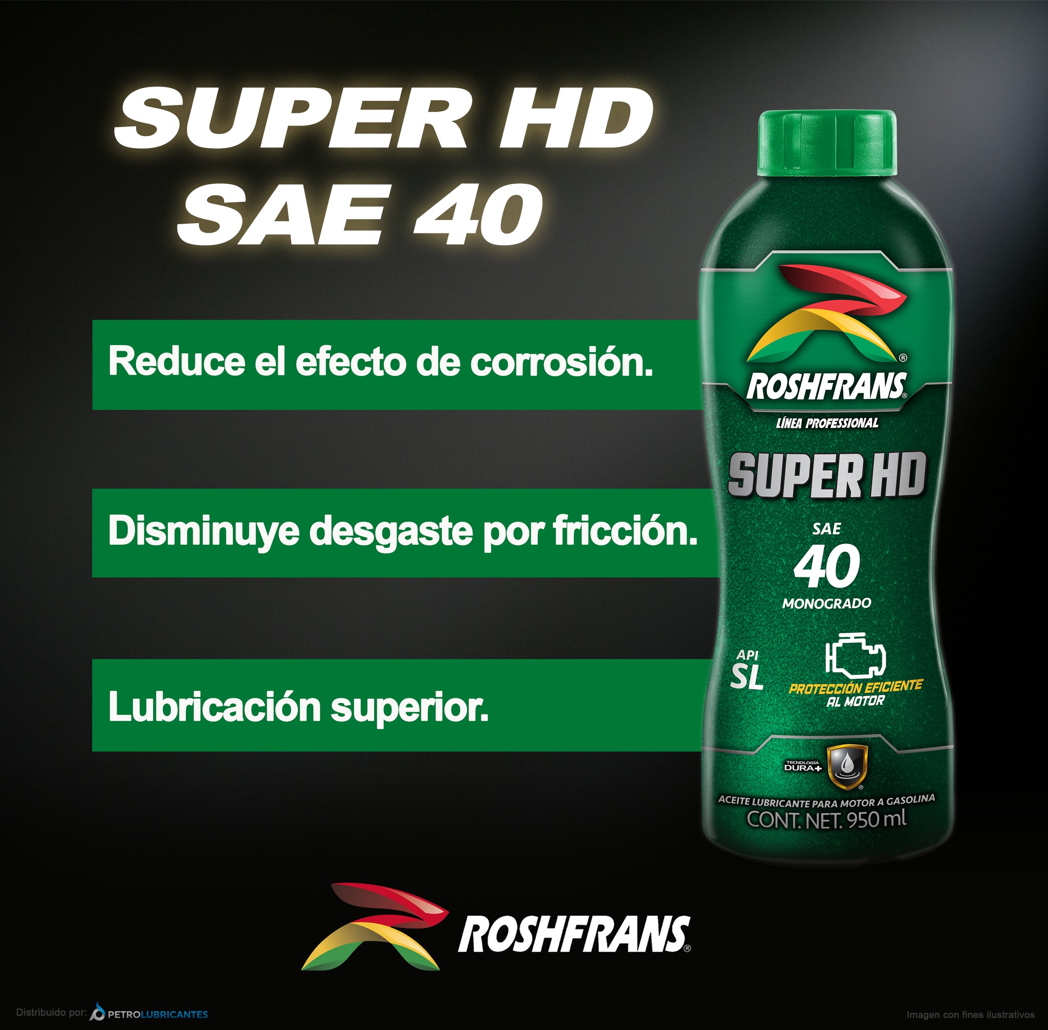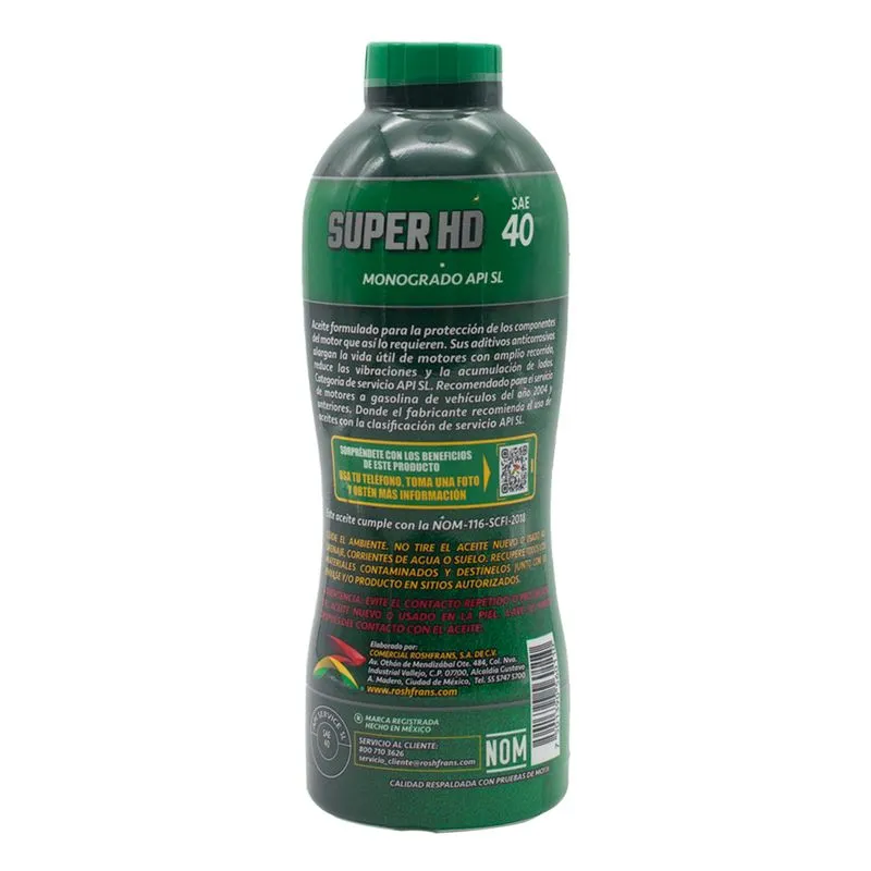 El aceite Súper HD API SL está formulado con aceites básicos minerales y un paquete de aditivos, diseñado para la lubricación y protección de motores de combustión interna a gasolina.