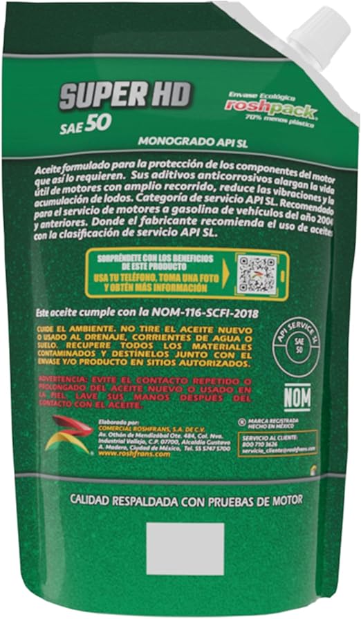 El aceite Súper HD API SL está formulado con aceites básicos minerales y un paquete de aditivos, diseñado para la lubricación y protección de motores de combustión interna a gasolina.